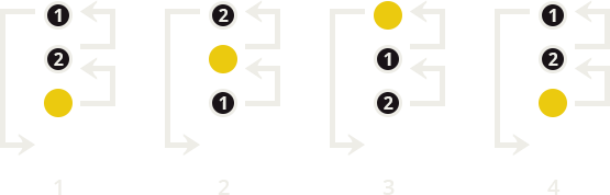 Follow a rider to the head of the group (diagram 1 and 2). When he peels off, it’s time for your rider to set the pace (diagram 3). When you think he has relayed enough, let him go back behind the others (diagram 4) and follow them until the initial rider is again back at the front. And so on…