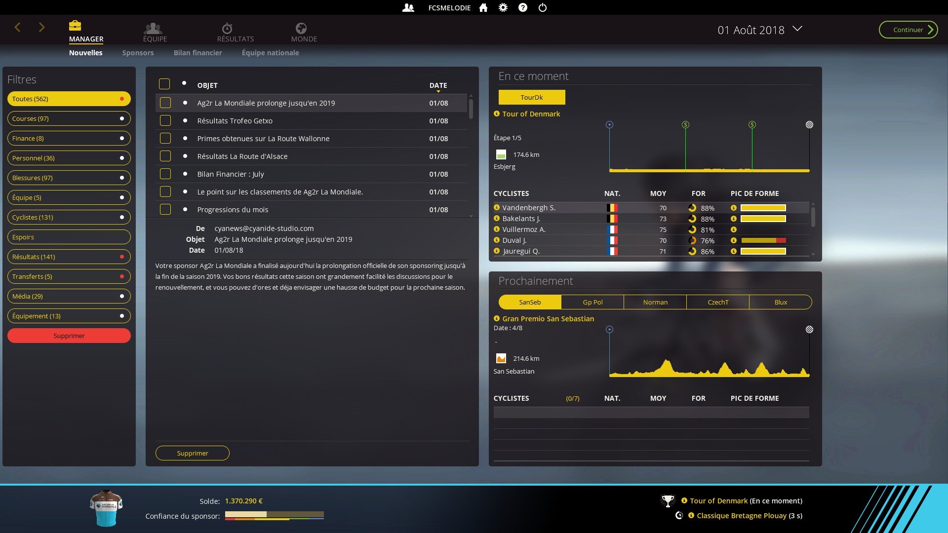 1.Here you can change the objectives for your rider. All races are present; choose them according to their prestige and the interest they represent for your rider. You can make a quick evaluation of their interest by looking at the impact of the choice of race on your leader's satisfaction gauge. A happy rider will be more competitive.