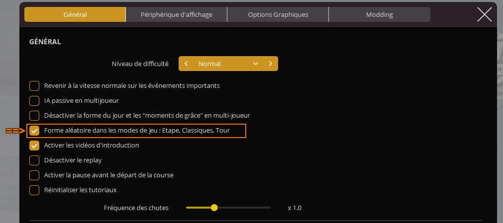 Tip: if you want all riders to start the race with 100% fitness, you should first untick the following game option: "Random fitness in Stage, Classics and Tour game modes".