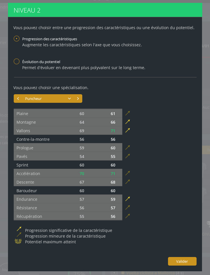 You can see your rider’s evolution curve on the Training>Progression page.